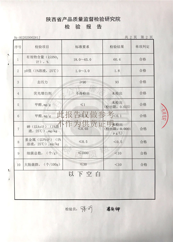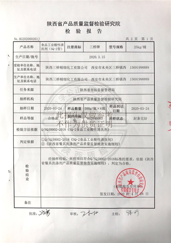 三橋牌食品工業(yè)酸性清洗劑檢測報(bào)告(2020年度)