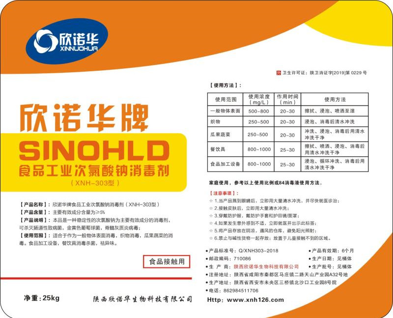 陜西欣諾華生物科技有限公司是專業(yè)生產(chǎn)欣諾華牌食品級(jí)次氯酸鈉消毒液的廠家,本品是以一種穩(wěn)定性的次氯酸鈉為主要有效成分的消毒劑,有效物含量≥5%,可殺滅腸道性致病菌,金黃色葡萄球菌,脊髓灰質(zhì)炎病毒。