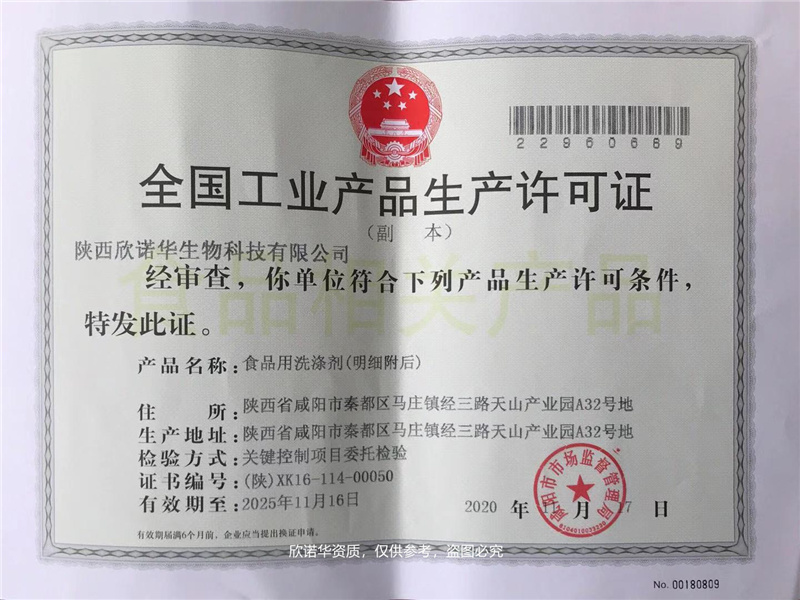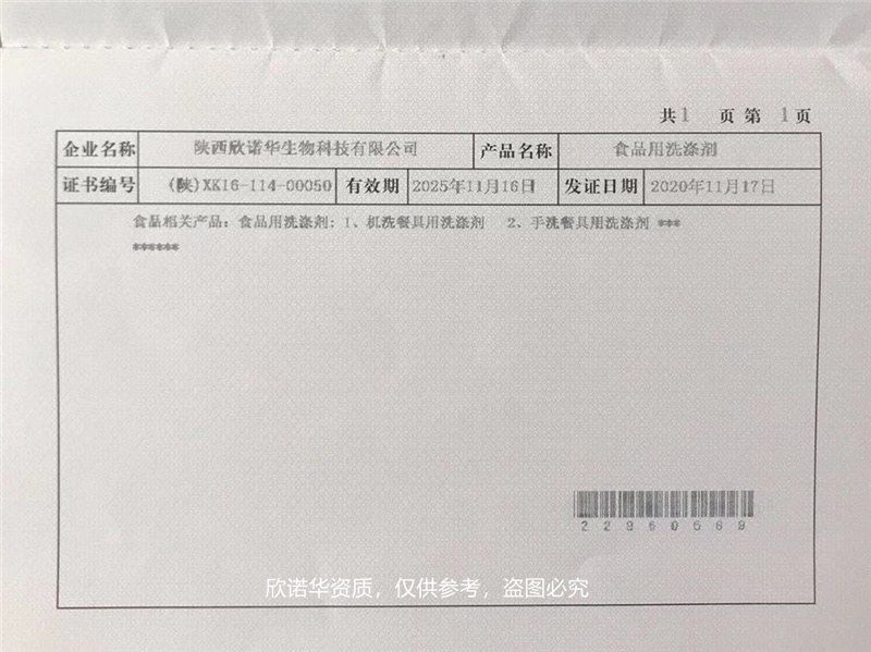 陜西欣諾華生物科技有限公司是陜西省一家同時(shí)獲得食品用洗滌劑B類和A類產(chǎn)品生產(chǎn)許可的企業(yè)!可同時(shí)生產(chǎn)手洗餐具洗滌劑,機(jī)洗餐具洗滌劑的企業(yè),公司將繼續(xù)以好的產(chǎn)品,優(yōu)的服務(wù)回饋廣大客戶,本公司前身(陜西三橋精細(xì)化工有限公司)生產(chǎn)的三橋牌食品工業(yè)酸堿清洗劑已連續(xù)十一年在省市及國(guó)家質(zhì)監(jiān)部門(mén)組織的飛行檢查中,為合格產(chǎn)品,請(qǐng)廣大客戶放心使用。