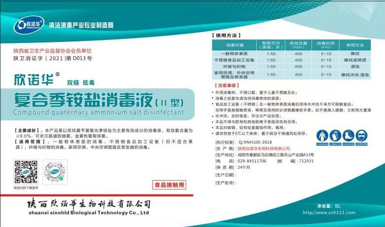 產(chǎn)品名稱: 欣諾華牌復(fù)合季銨鹽消毒液 商標 :欣諾華牌