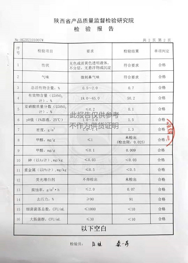 三橋牌過氧乙酸消毒劑(SQ-706型)檢測(cè)報(bào)告