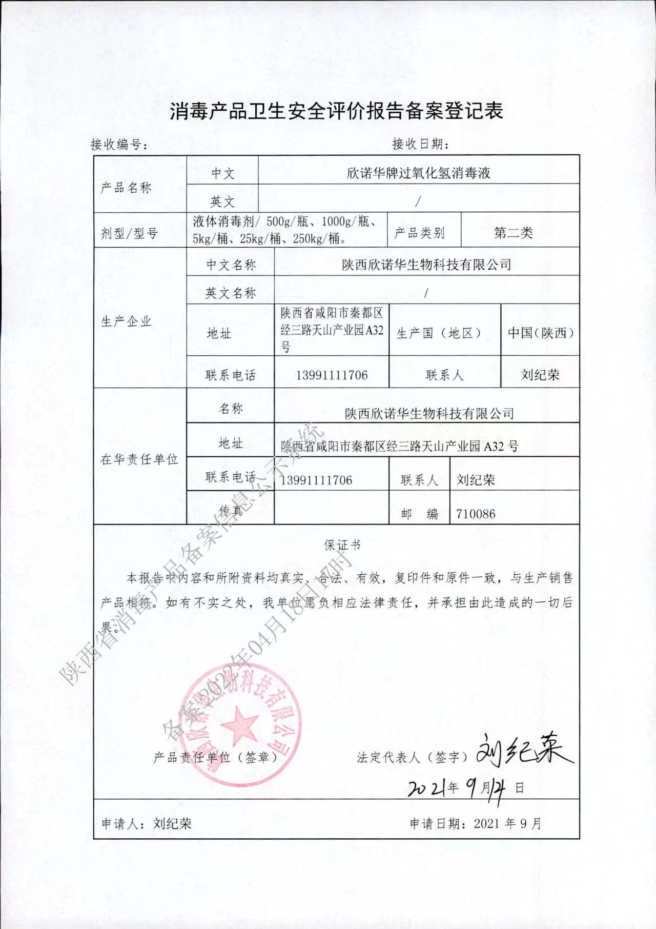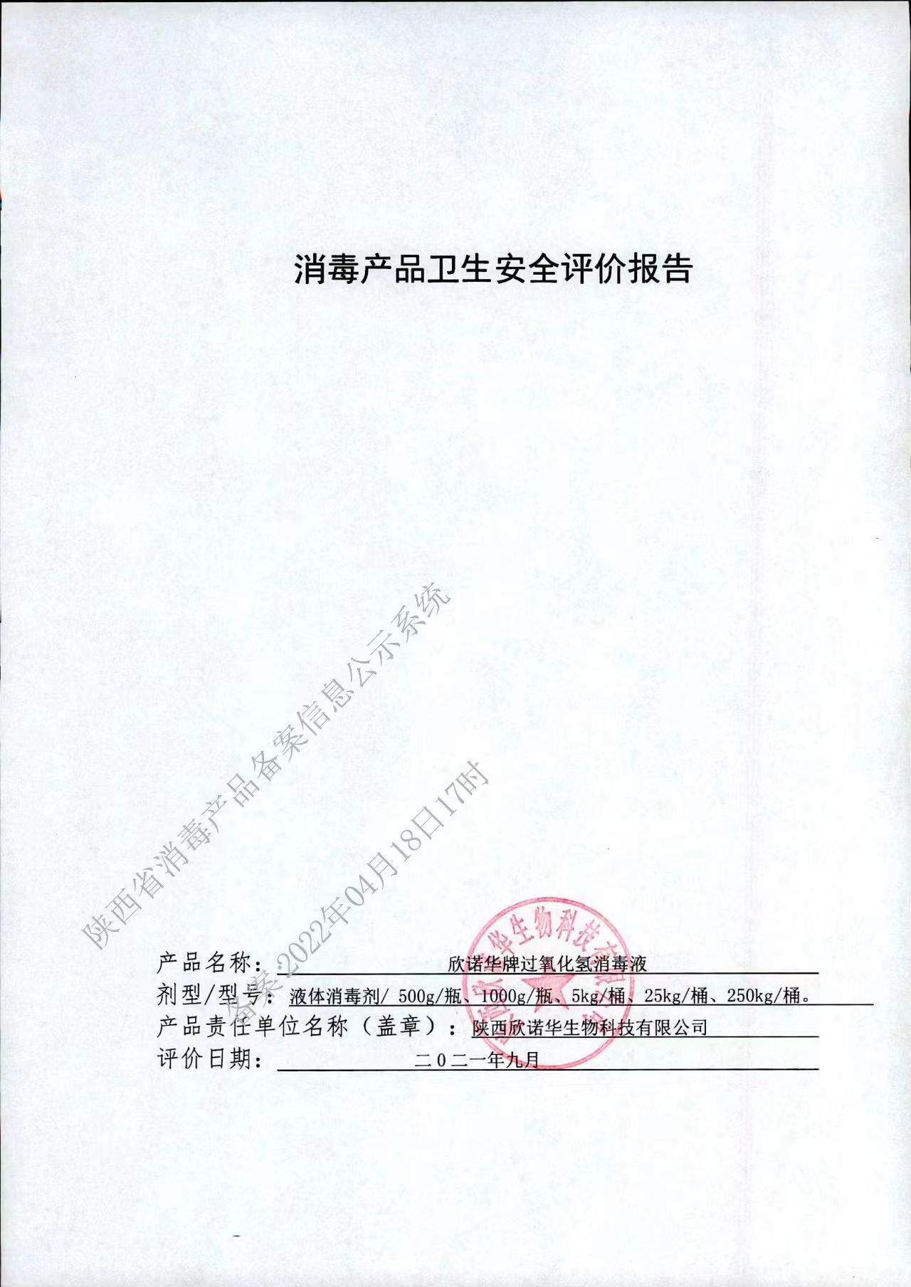欣諾華牌過氧化氫消毒液(食品級雙氧水)安全評價報告-陜西欣諾華生物科技有限公司
