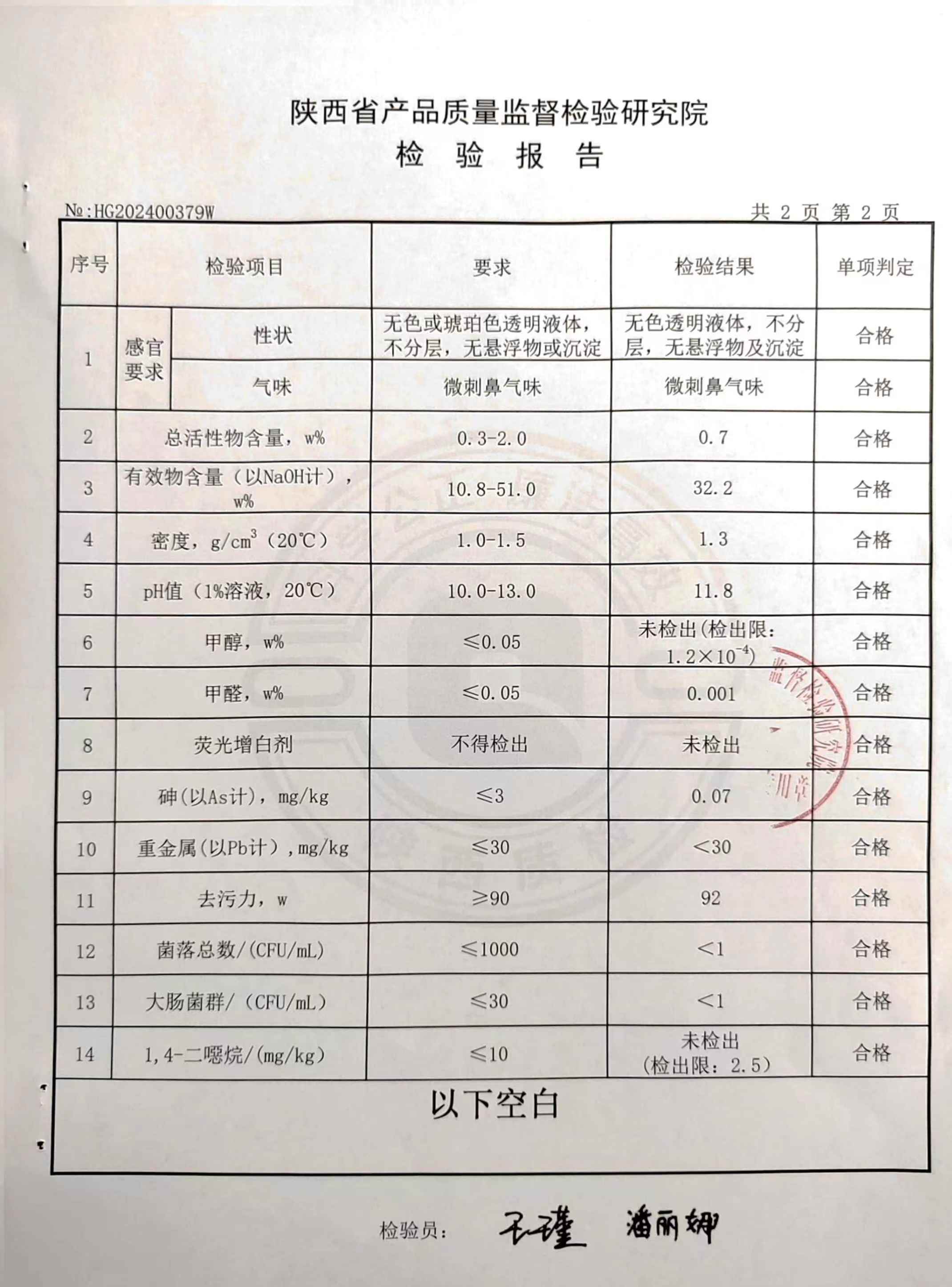 食品工業(yè)堿性清洗劑檢測報(bào)告(2024年度)