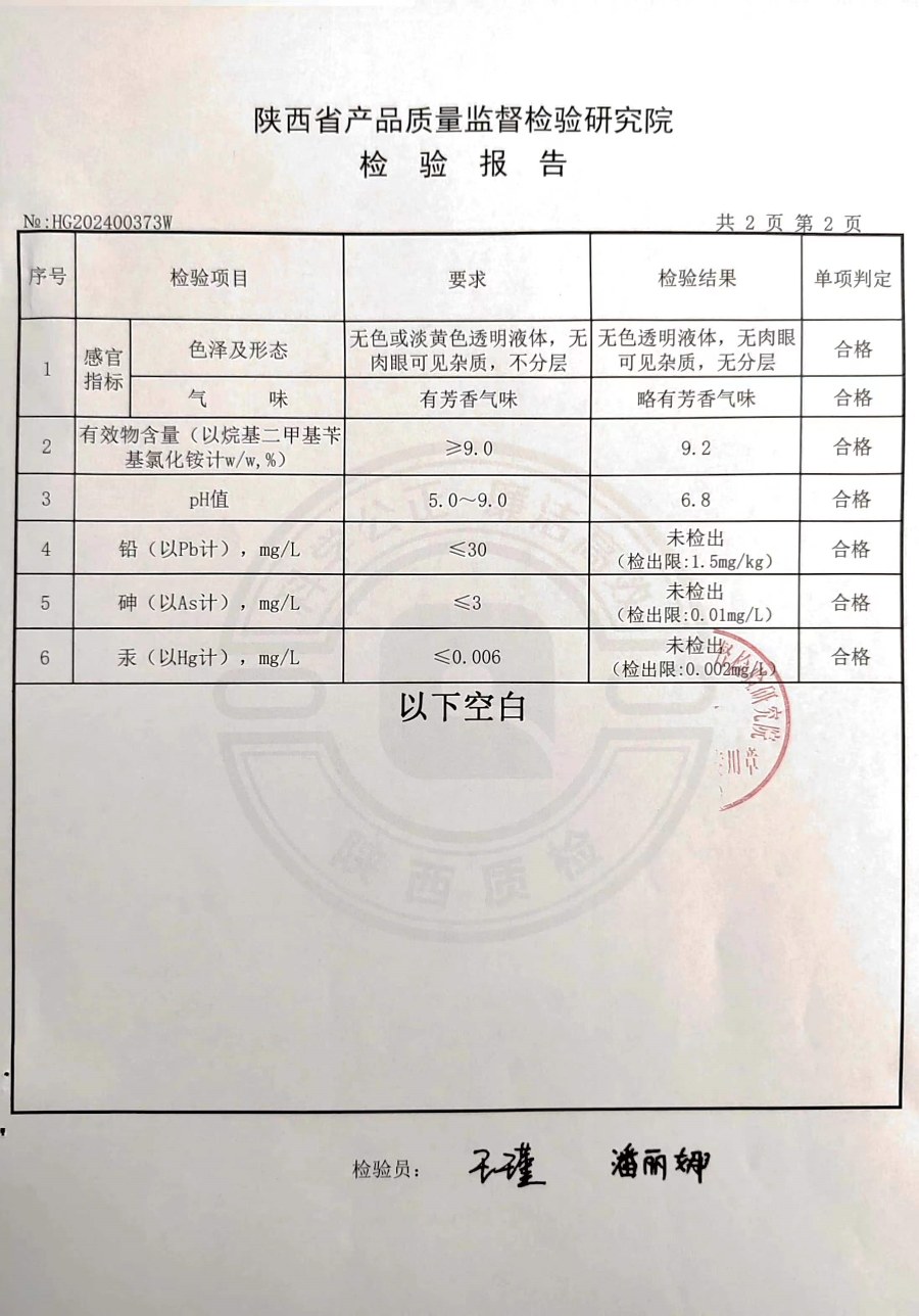 復(fù)合季銨鹽消毒液檢測報告(2024年度)